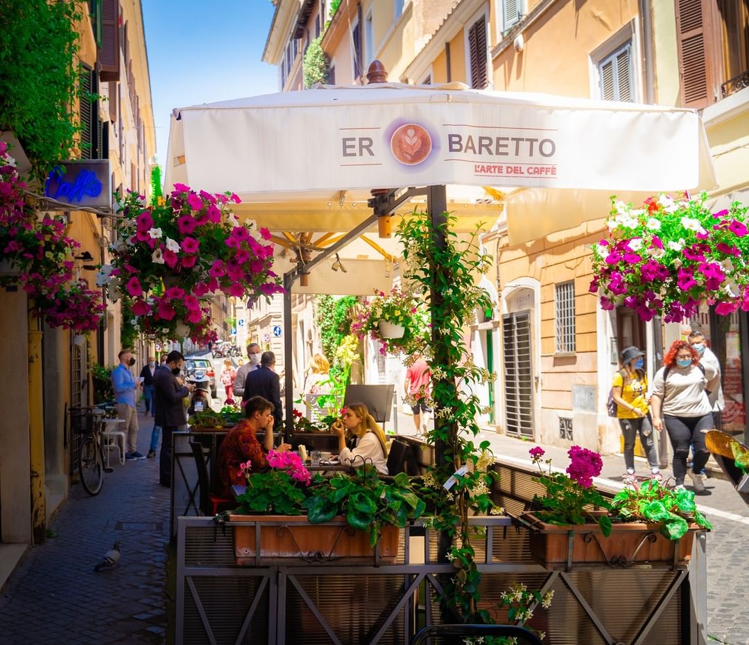 Situato in una delle principali strade del Rione Monti, nel pieno centro storico di Roma, l’Arte del caffè ‘‘Er Baretto” è il locale ideale per gli appassionati del cappuccino e del caffè a Roma, aperto a pranzo e cena, per apertivi, pranzi e cene o semplicemente per gustare un buon bicchiere di vino o un cocktail. Molte sono infatti le varietà e gli aromi proposti nella carta della caffetteria e non solo.